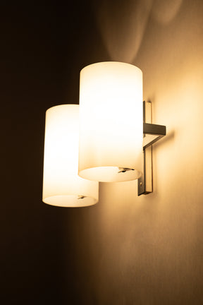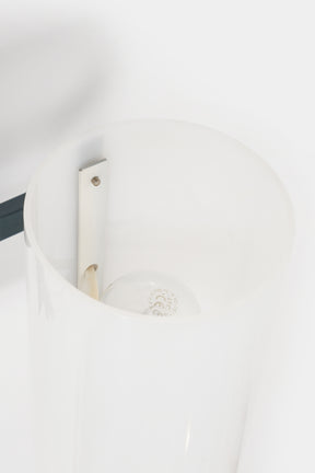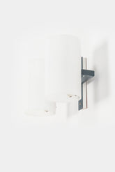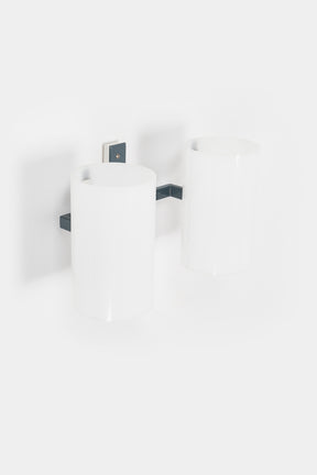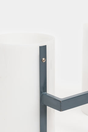 Beautiful wall spotlights with plexiglas tubus shields, with a very simple metal bracket. The wooden base made for the wall brackets is included. Very nice vintage condition.
