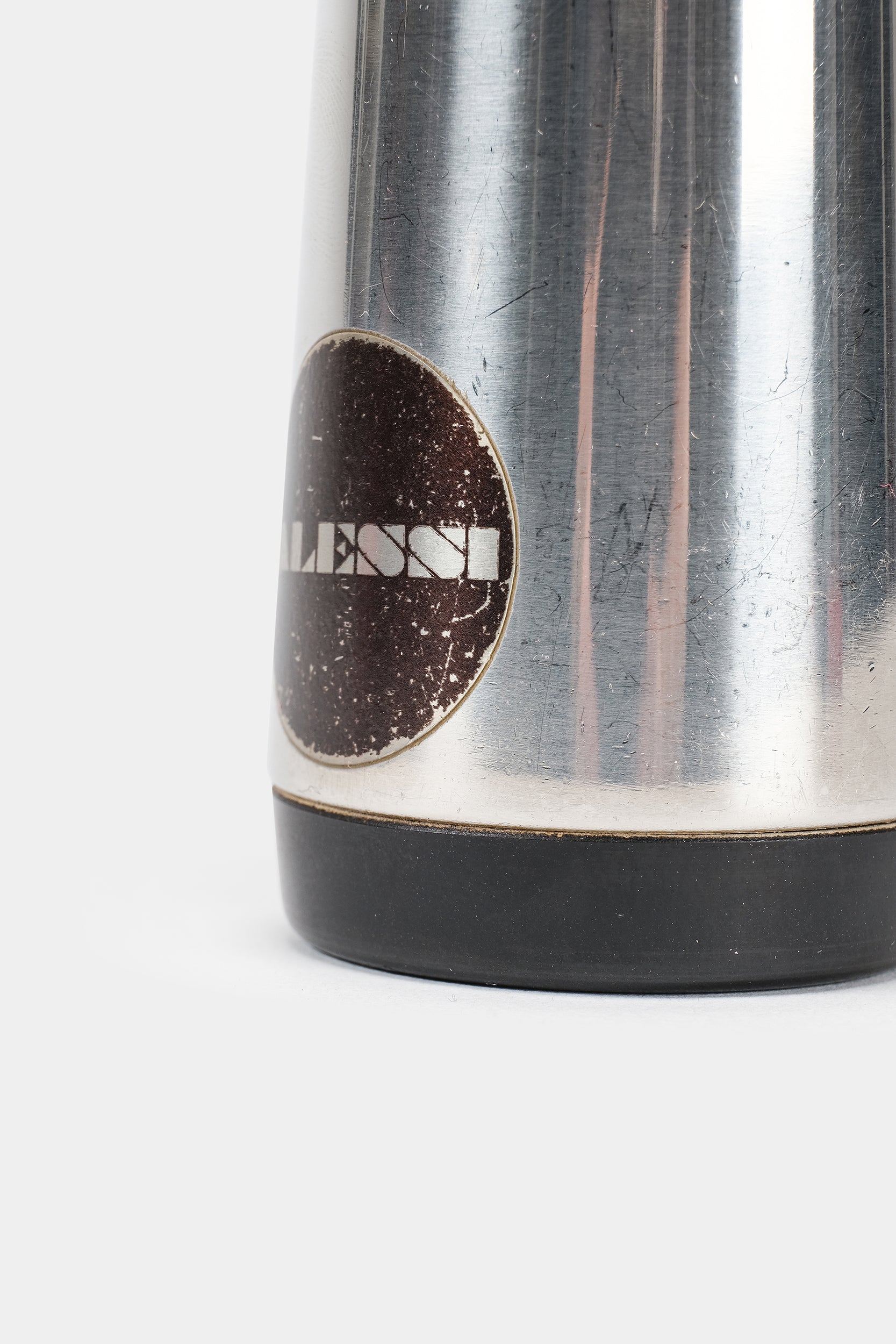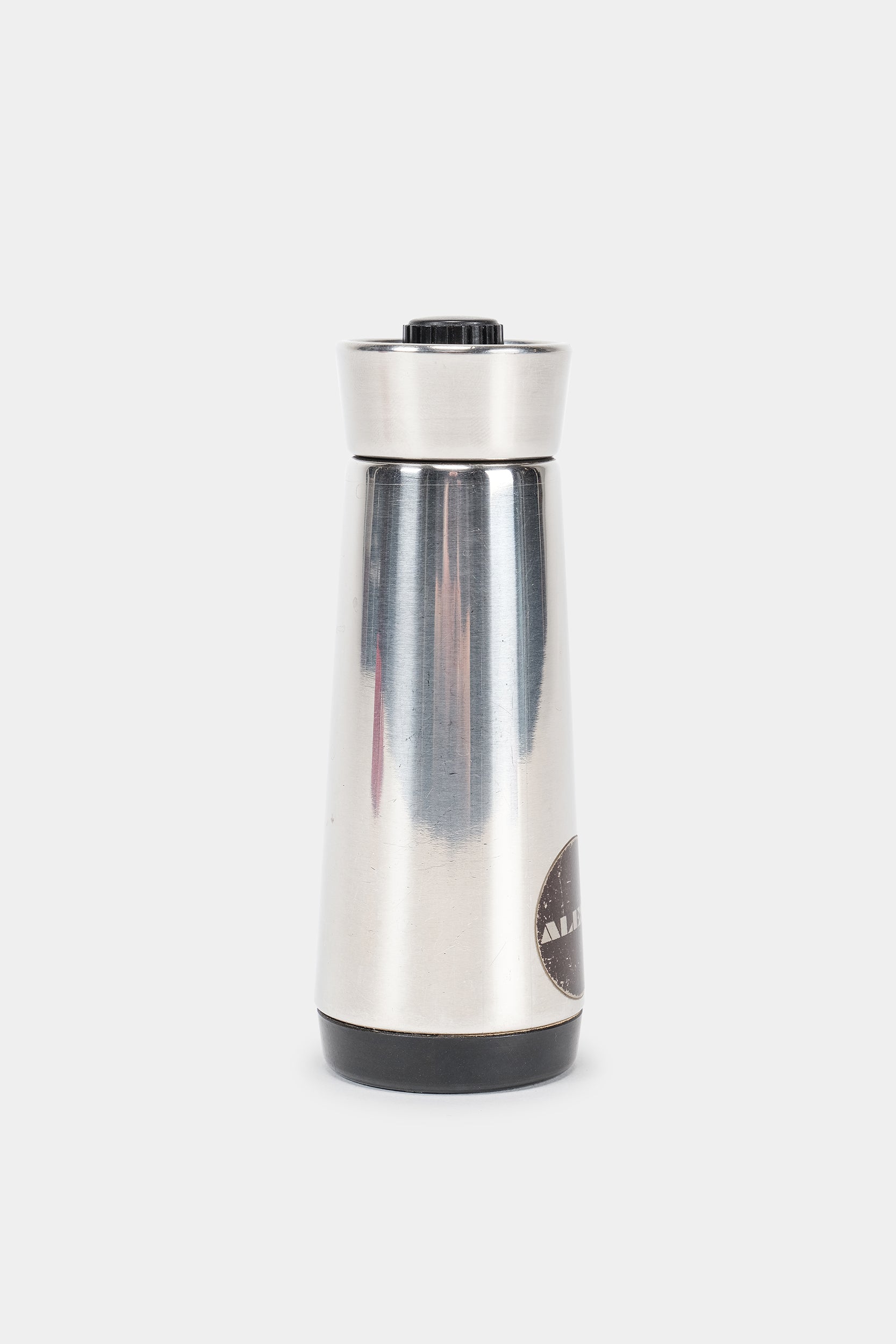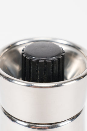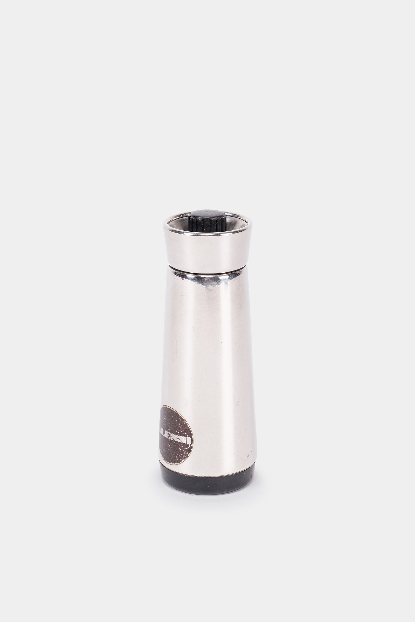 Entworfen von Carlo Mazzeri und Luigi Massoni für Alessi in den 60er Jahren, versehen mit dem berühmten schwarzen Alessi-Aufkleber. Diese Pfeffermühle aus Edelstahl ist ein echter Designklassiker, welche nicht nur funktional gedacht, sondern als elegantes Alltagsobjekt gestaltet wurde. Ihr klares Design wirkt auch heute noch sehr zeitgemäß. In gutem vintage Zustand.