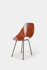 Ein unvergleichlicher Medea Stuhl von Vittorio Nobili, hergestellt durch Fratelli Tagliabue. 1955 mit dem Industrial Design Award Compasso d’Oro ausgezeichnet. Mahagonischichtholz mit vier sichtbaren Messingschrauben. Sehr schöner Vintage Zustand.